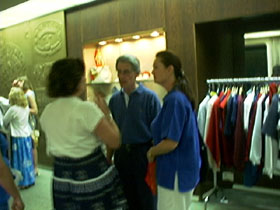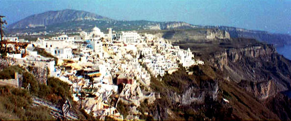 We walked around, up and down the hills in the beating sun. It was hot. Santorini was beautiful. Lots and lots of jewelry stores. We bought 4 t-shirts @3500 drachmas each. I bought 2 magnets @ 900 drachmas each and a set of ceramic fish salt and pepper shakers for 7500 drachmas. There's so much gold. I bought 2 big scarves (pareos), one was 2000 drachmas and the other 3900.