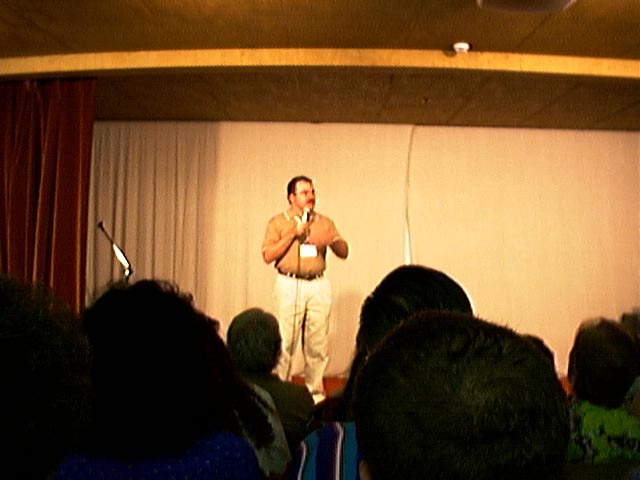 The seminar was held in the theater at 11:00 a.m. with Brian. He is very low key. I am impressed. Brian is very funny. He and James together pretend they are taking their show on the road.
