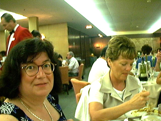 At dinner they seated us with Marie from CT, a therapist, and Kate from KY in telecommunications who wants to get into the cruise line business. We all got the veal cordon bleu except for Marie who is a vegetarian. The veal was tough and rather terrible.