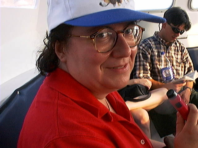 We caught the 7:00 p.m. tender back. It was steaming . We got back, took showers, changed clothes, and later went to eat. Mark fooled around with the cameras and dowloading to the computer before we left for dinner.